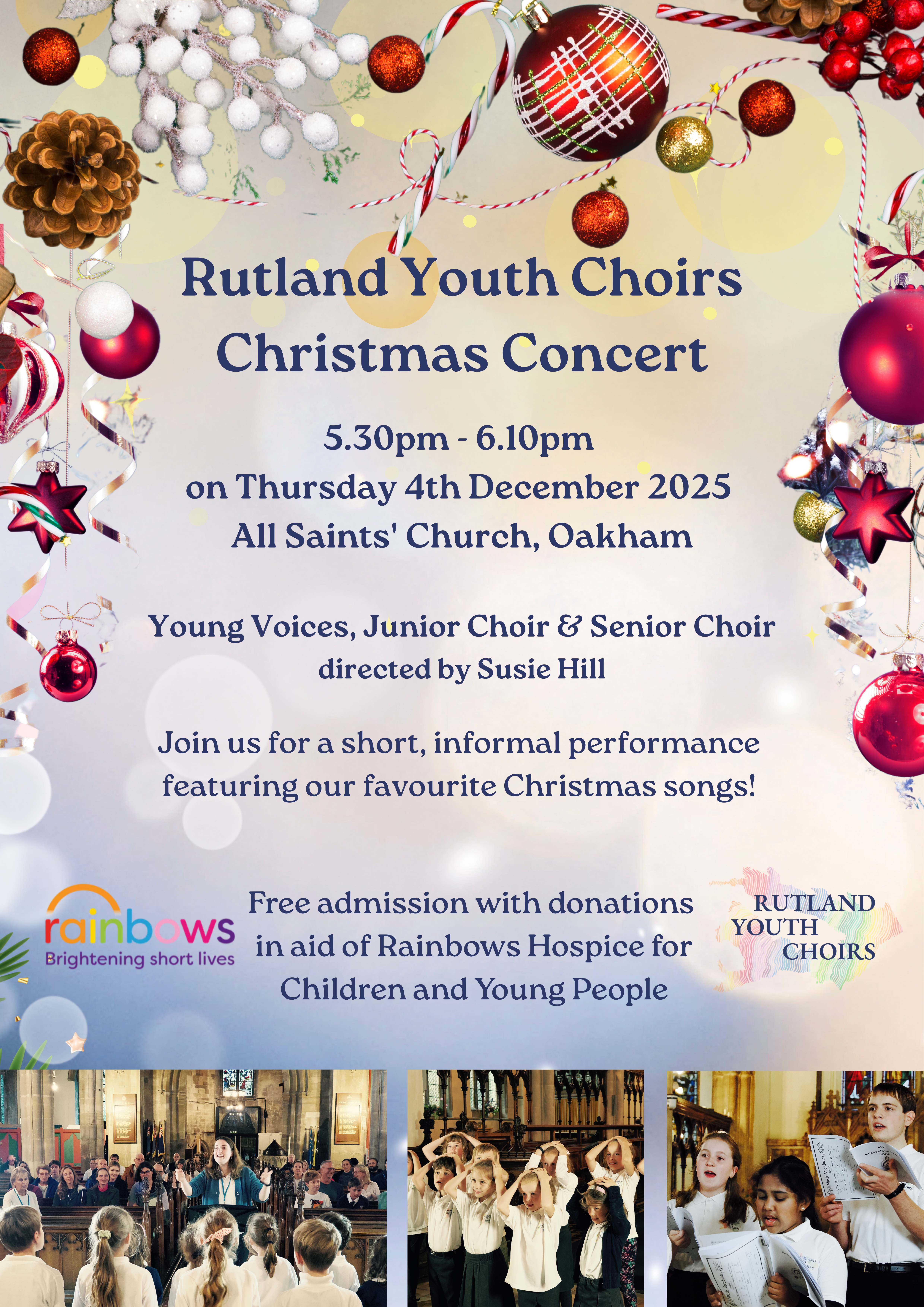 Rutland Youth Choirs are three choirs for young people aged 5-18 based in Rutland and the surrounding area. The choirs meet weekly on Thursday afternoons during term time and provide a welcoming, inclusive space for young people who would like to develop their musical interests and to create friendships with other budding musicians. There is no audition process; all you need is enthusiasm! Find out more here.